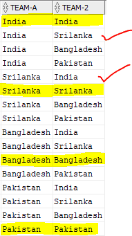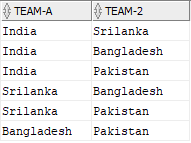 根据Dummy和ID字段对 TEAMS 表执行自连接,如下面的查询所示,以获得预期的输出。