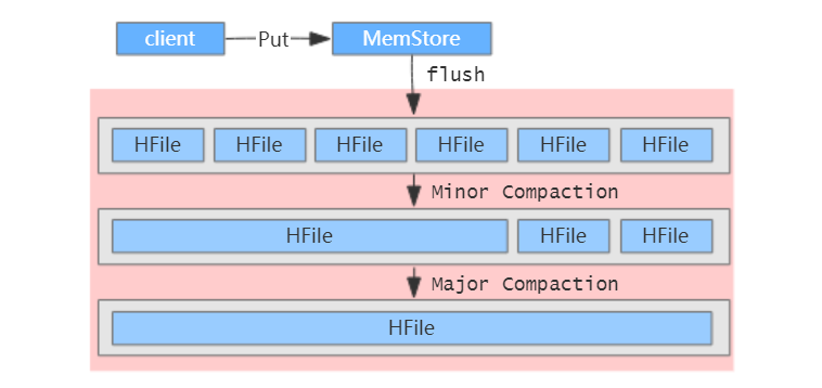 - 目的: 将数个小的、相邻的 HFile 合并成一个或少量更大的 HFile,以减少文件数量,优化读取性能。